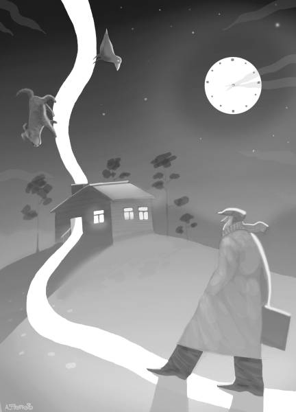 Пока она ела, я вышел во двор. «Тебе тоже гречки, что ли?» – спросил я у Ворона. Но тот не ответил, зачарованно уставившись на высокую луну. «А ты что молчишь?» – спросил я у Пса. Но в могиле было тихо, как… в могиле, собственно. «Ну а ты что под руку кряхтишь всё время?» – обратился я к Дому. Но тот сделал вид, что это его не касается. И зная его характер, он скорее имел в виду, что глухим обедню по два раза не служат. «Тьфу на вас, чучела языческие!» – И я вернулся назад, к теплу.