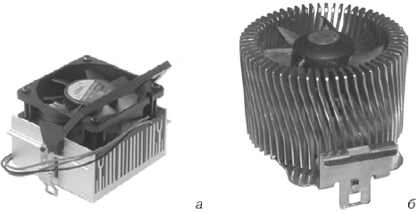 Рис. 1.13. Радиатор с кулером для охлаждения процессора: а – прямоугольный; б – круглый