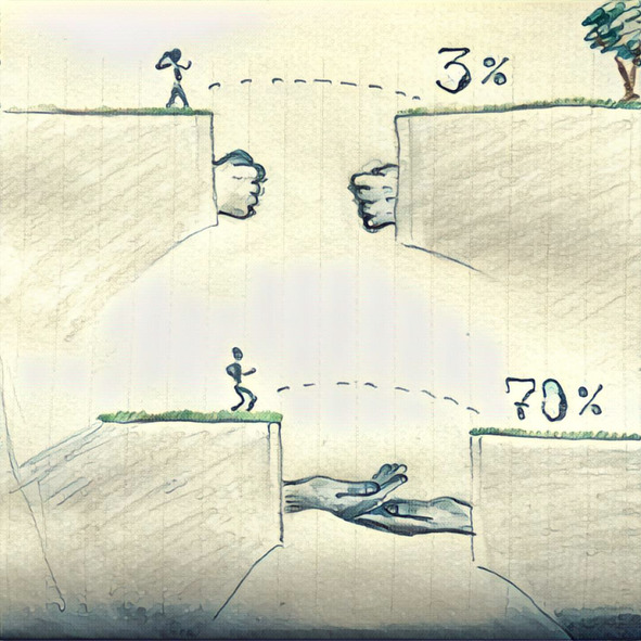 Но если человек будет знать, что его ждет на пути, и если будет кто-то, кто сможет его поддержать на этом пути, – то вероятность успеха 70%.
