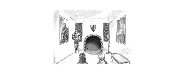 Брат нервно прижал палец к губам. Раздался скрежет, и стена за камином сдвинулась. Из проёма показался тёмный силуэт, за ним ещё один – женский, в пышном старинном платье.