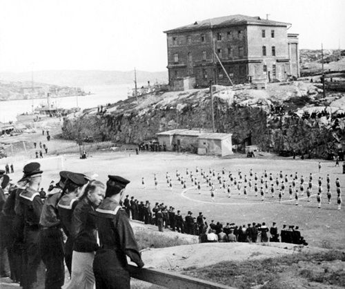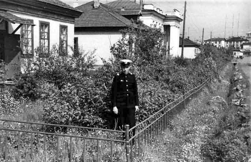 Во времена моего детства вдоль Советской улицы с одной стороны была, как мы её называли, пожарка, где стояли пожарные машины, жила пожарная команда, дальше какое-то армейское учреждение, куда часто въезжало армейское начальство в бараньих папахах, а дальше стояло четыре длинных двухэтажных барака с двумя подъездами. У одного барака была только половина, другую отрезало в войну во время бомбёжки. На противоположной стороне улицы стояли небольшие деревянные одноэтажные и одноподъездные дома, в которых размещались почта, горком, исполком, милиция и коммунальные квартиры. Улица была вымощена булыжником. По её обеим сторонам были проложены деревянные тротуары. С одной стороны между тротуаром и дорогой были разбиты газоны с клумбой в центре, обнесённые низкими чугунными решётками. По тротуару фланировали, особенно в светлые, как ясный день, летние вечера, парочки. Бабки, располагавшиеся на противоположной стороне на длинных скамейках вдоль бараков, внимательно их отслеживали. Особенно доставалось девчонкам, которые прогуливались с солдатами: «Таковская, с солдатом гуляет!» Гуляние с матросом прощалось, а с солдатом порицалось. Матросы числились у населения рангом выше, чем солдаты. Одна форма чего стоит, да к тому же в матросы набирали более образованных ребят. Они и вели себя по-другому – можно сказать, более интеллигентно. Девушки, которых в городе было по сравнению с мужским населением не так уж и много, как правило, предпочитали матросов. Особенно это было заметно на танцах – солдатам часто отказывали. Поэтому солдаты с матросами постоянно враждовали, нередко с мордобитием и погонями по длинным коридорам из одного барака в другой. Бились, намотав широкие ремни на руку, до тех пор, пока драчунов не забирал морской или армейский патруль. Всех грузили в открытую грузовую машину и везли в комендатуру, где их ждала гауптвахта, проще говоря – губа.