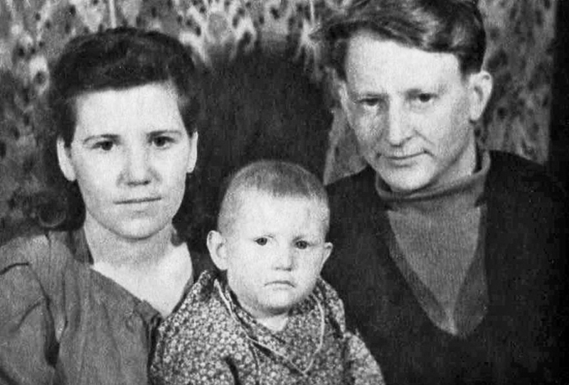Антонина и Геннадий Рожковы с дочерью Лией. Полярный. 1945 год