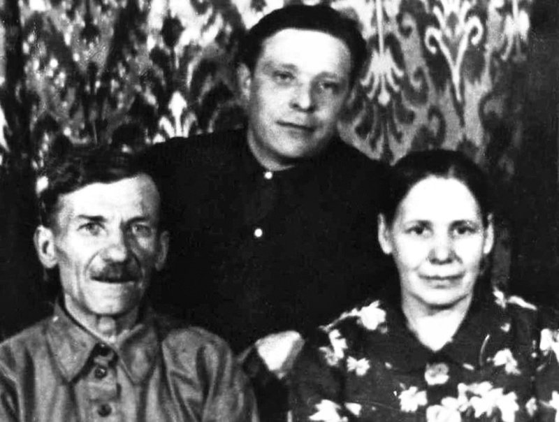 Михаил Аполлинарьевич и Надежда Игнатьевна Калинины, в середине – Фёдор Семёнов. 1946 год