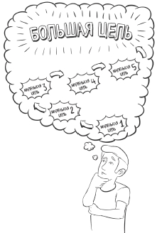Давай рассмотрим процесс написания этой книги. Когда я решил написать книгу, я поставил перед собой несколько подцелей: писать как можно больше каждый день, каждую неделю. Я не пытаюсь выполнить крупную цель; вместо этого я выполняю маленькие цели, постепенно приближаясь к большой.