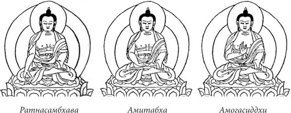 Думайте, что каждый из этих будд – это воплощение Будды, Дхармы и Сангхи всех трёх времён и десяти сторон, всех статуй, ступ и писаний. Думайте, что они воплощают собой все священные объекты, сущность которых – Гуру.