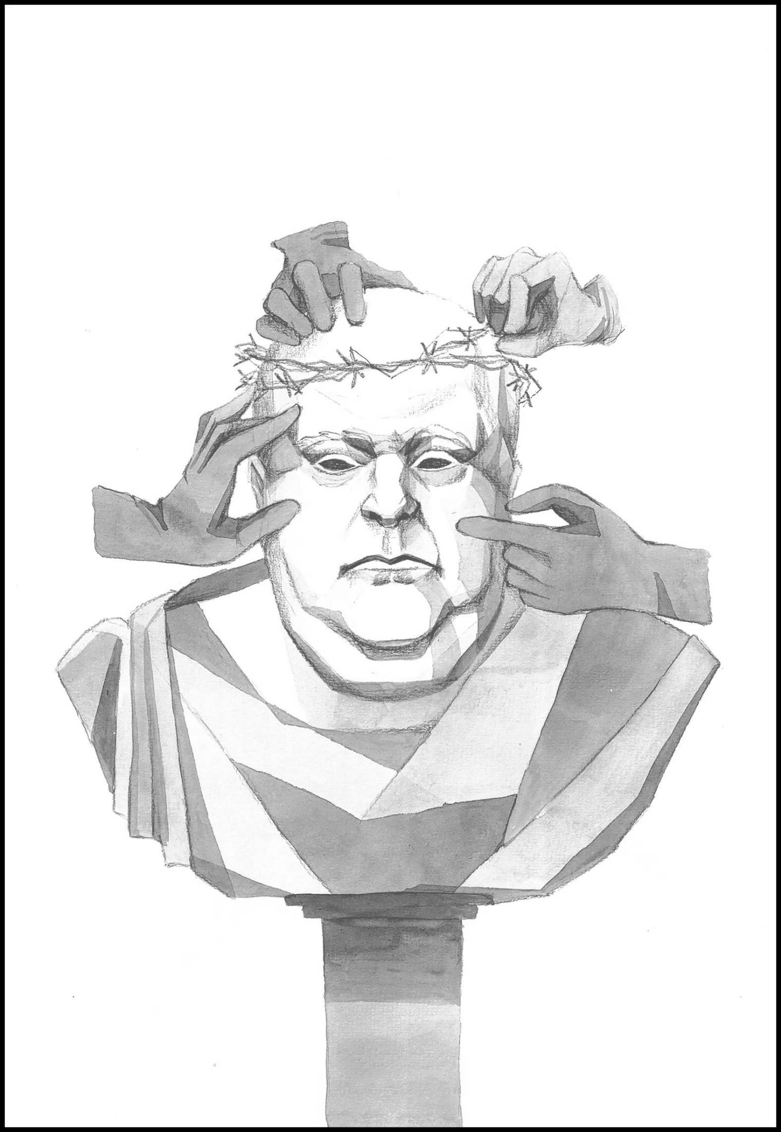 На глухом торце девятиэтажки маяком горела вывеска «Продукты». Спасаясь от холодного дождя, я кинулся к ней, давя лужи насквозь промокшими ногами. Под вывеской оказалась лестница, ведущая в подвал, а внизу – узкий «бункер», заставленный дешёвой снедью: бумажные ценники с нарисованными от руки числами, хлипкие витрины, заставленные алкоголем. За прилавком сидела большая бесформенная женщина, которая забвенно уставилась в крохотный телеприёмник. Глаза её были наполнены счастьем: разум же её был там, в огромном зале, среди сотен дорогих пиджаков, которые рукоплескали Лидеру, что стоял под сенью имперских штандартов, в зале, залитом светом мощных софитов.