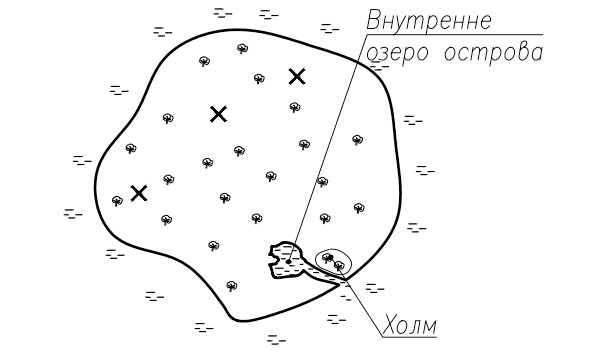 Это был грязный листок на очень плотной промасленной бумаге. На листке был нарисован план острова с географическими координатами. Остров находился не ближе, чем в 100 километрах от ближайшего к Ленинграду берега Ладоги. В трех местах на острове были нанесены крестики. А в условных обозначениях указано: «Места расположения сокровищ». Внизу плана была надпись: «Настоящий план составлен Густавом Манергамом. 1917 год».