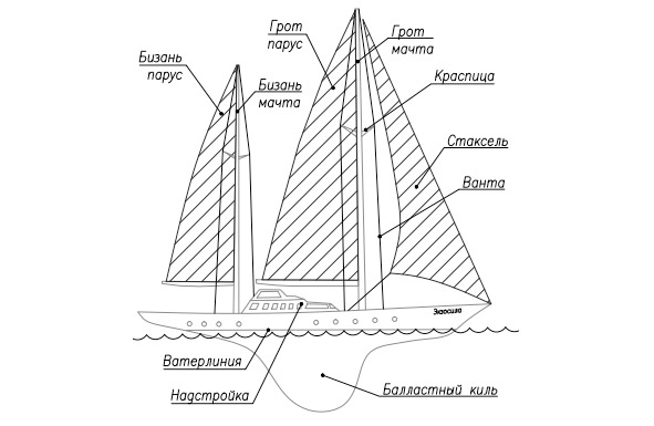 Парусники, как и военные корабли, моряки называют не судами, а кораблями. Так, что и наша яхта тоже корабль. На нашем корабле несколько помещений: камбуз (кухня), кают-компания, гальюн (туалет по-морскому), кубрик для матросов, три каюты для гостей, каюта капитана, штурманская, несколько складских помещений.