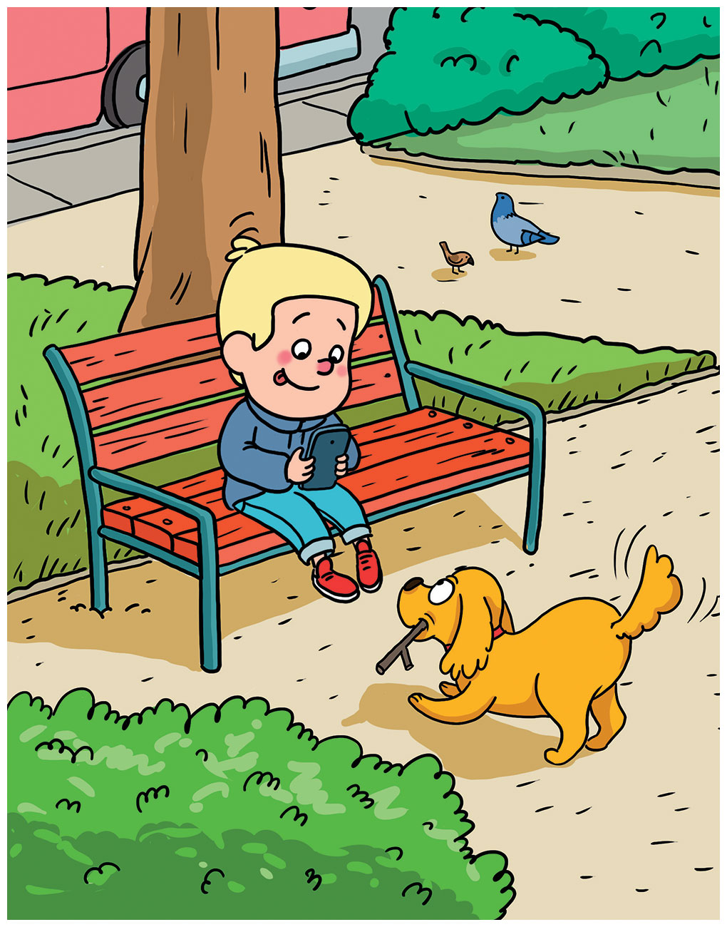 Ему достался какой-то странный зверёк, немного напоминающий собаку. Зверя нужно было кормить и выгуливать (об этом телефон сообщал короткими попискиваниями), со зверем нужно было играть. Никита увлёкся. Быстро прошёл первый уровень, второй, третий и не заметил, как школьный коридор опустел. Одноклассники разошлись по домам. Не выпуская из рук мобильник, Никита спустился в раздевалку, оделся и вышел из школы.