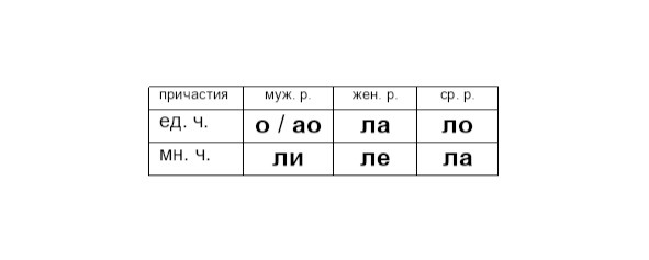 Правильные глаголы (их подавляющее большинство) заканчиваются на «ти». В причастиях стандартные окончания инфинитивов «ти» заменяются окончаниями, приведёнными в таблице: