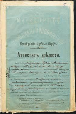 1911, август -1919, май — учеба в Оренбургской первой мужской гимназии.