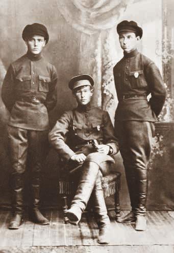 Как будет указано в одной из его анкет, в том же 1919 году он добровольцем ушел в поход с красноармейской кавалерийской бригадой. Сохранившееся фото, сделанное непосредственно перед этим событием, пожалуй, не дает оснований сомневаться в добровольности решения, принятого вчерашним гимназистом, – заснятый в новенькой униформе в компании друзей, он всем своим видом демонстрирует сосредоточенную решимость идти в «последний и решительный бой».