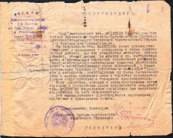 Удостоверение, выданное Г.М. Маленкову Политическим отделом 1-й бригады 3-й Туркестанской кавалерийской дивизии 1-й Революционной армии в том, что он является инструктором-организатором организационно-агитационного отделения Политотдела. 29 сентября 1920 [РГАСПИ. Ф. 83. Оп.1.Д. 39. Л. 11]