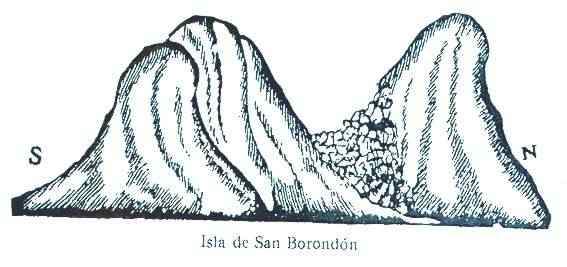 Очертания Сан Борондона, каким его увидели с острова Эль Йерро в 1721 году