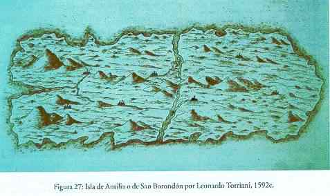 Карта острова Антилия или Сан Борондон, сделанный Леонардо Торриани в 1592 г.