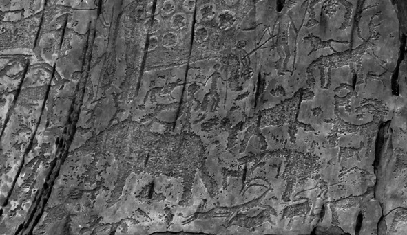 Рис. 2.2. Петроглифы урочища Калбак-Таш в Онгудайском районе Республики Алтай (фото автора, 2020 г.)