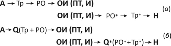 Схематически этот этап можно предоставить так, как показано на рис. 2.4. Здесь верхняя часть записей (а) и (б) отвечает процессу создания ОИ автором, а нижняя – процессу его рецепции, прочтения наблюдателем. Дело в том, что согласно рис. 1.1 со временем развивается не только антропотехническая система автора, но и аналогичным образом развивается и воспринимающая система наблюдателя! Проиллюстрируем это простым примером.