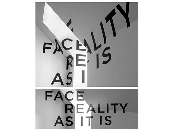 Рис. 2.5. Анаморфное изображение, полученное Д. Иганом и Х. Томпсоном (2010) за счёт использования нескольких плоскостей здания колледжа, где они учились дизайну. Только в одном положении можно правильно прочитать фразу «лицо реальности – как оно есть» [56]