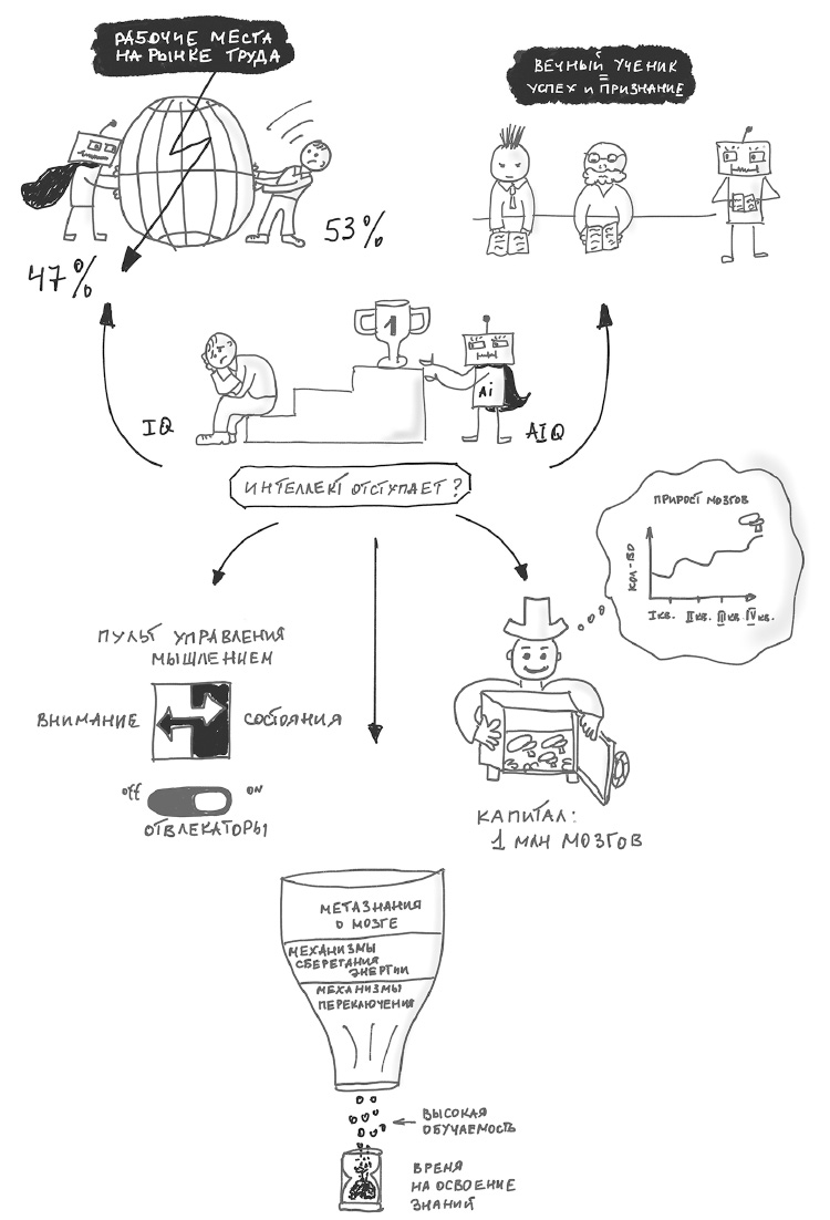 Поэтому на смену прежнему обучению теории в течение пяти лет, неторопливому и пассивному, приходит динамичное и непрерывное обучение в течение всей жизни. Новая стратегия подразумевает модульное и интервальное обучение с немедленным применением на практике, выработкой необходимых навыков, апробацией бета-версий и прототипов (продуктов, решений, гипотез, идей, предпосылок), извлечением знаний из ошибок и промахов. Для такого обучения необходимы критическое мышление и способность довольно быстро обрабатывать большие объемы новой информации. Новую информацию мозг усваивает с трудом, требуются большие энергозатраты. Проблемы с концентрацией и вниманием сильно усложняют эту задачу. Все эти навыки – извлекать из памяти по требованию необходимые знания, вырабатывать нестандартные решения – необходимо «поставить» прежде, чем осваивать знания. Важно обзавестись навыками, общими для всех дисциплин, – навыками обучения. Это знание не «что», а «как». О том, какую роль во всем этом играют память, фокус и различные режимы решения творческих и новаторских задач, мы поговорим в этой книге.