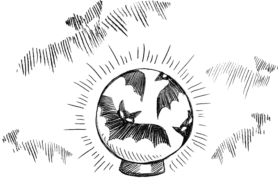 Внутри шарика мелькала лампочка, а сам он неспешно крутился. И на его поверхность были нанесены маленькие силуэты летучих мышей. Их тени и проносились по стенам, потому и казалось, что мыши летают над головами.