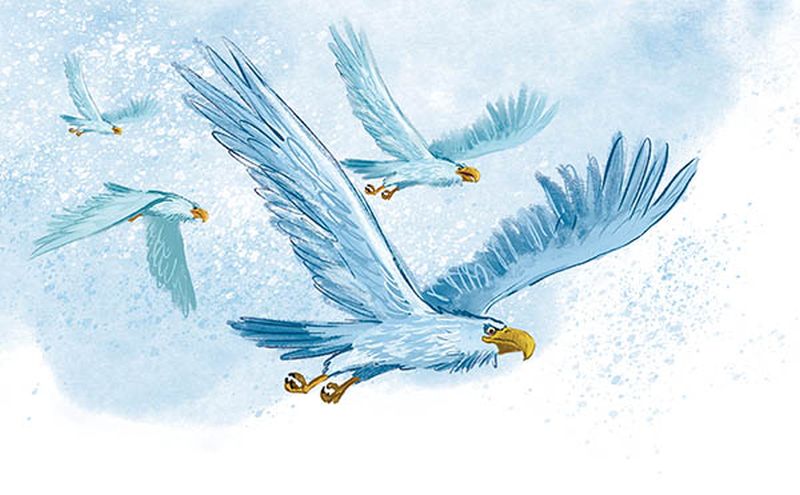 – Мы с дедулей в нашем диком глухом лесу каждый Новый год украшаем самую большую ель белками, снегирями, синицами и жар-птицами. Прямо в снег на лапы еловые они садятся и терпеливо ждут вместе с нами Деда Мороза со Снегурочкой. Жуть как красиво. А на верхушке ели филин Филя сидит в красной высокой шапке. По сторонам глядит, глазами жёлтыми лупает, хочет каждый раз увидеть, откуда сани едут. И никогда не успевает уследить. Такие быстрые летучие олени у Деда Мороза. И всегда он к нам вовремя поспевает, прямо к празднику! Ни метели, ни холода ему не помеха. Ещё бы, ведь он сам и есть Мороз!