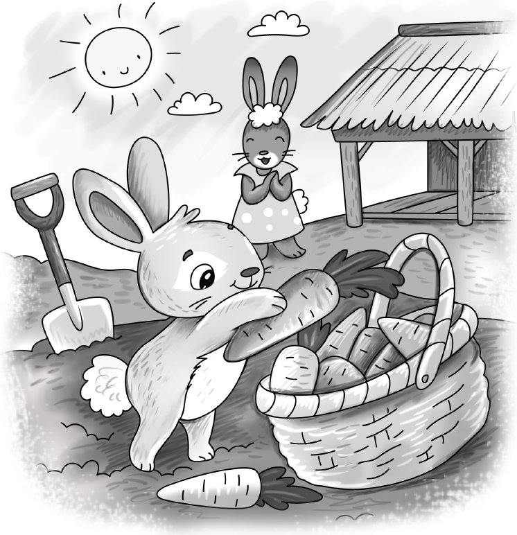Маленький зайчонокПрыгал на поляне.Прыгал, прыгал зайчикИ вернулся к маме.Говорила мамаСвоему сыночку:«Помоги морковкуУнести к тенёчку».В огород зайчишкаБыстро поскакал,Полную корзинуОвощей набрал.Похвалила мама:«Молодец, сынок!Вот какой помощникУ меня растёт!»
