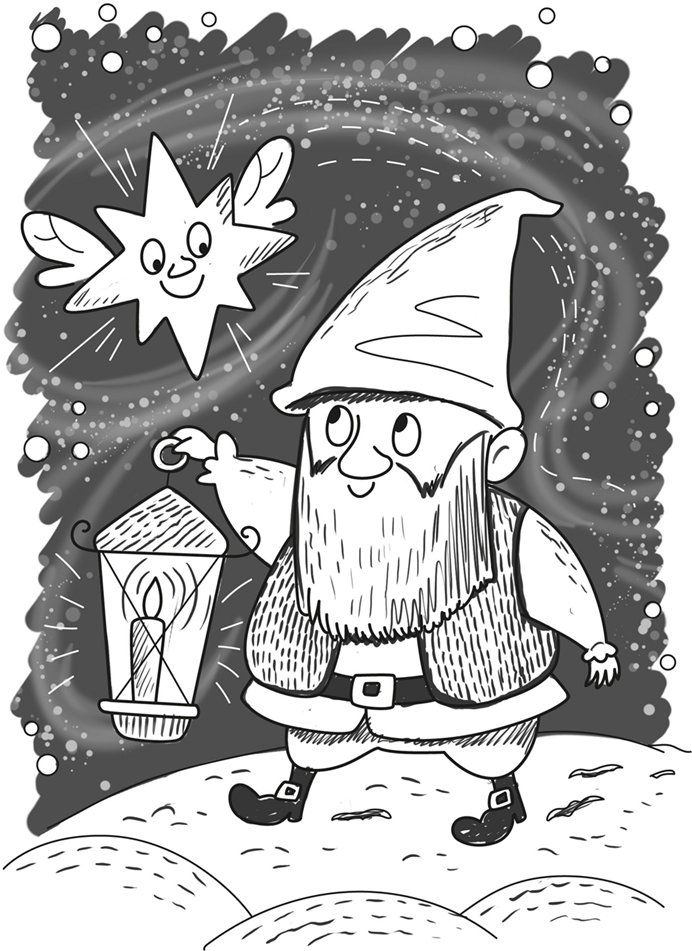 Гном Хюгге возник неизвестно откуда…Он путь освещал Новогоднему чуду,Когда за окном хулиганила вьюга,Мешая пройти заплутавшему другу.Старинный фонарь гному верно служил!А снег всё кружил и кружил, и кружил…Заметив фонарь, Новогоднее чудоВдруг стало сверкать, невзирая на вьюгу,Мерцать огоньками, мигать и искриться,Чтоб с гномиком к каждому в полночь явиться.Затихла пурга…И снуют по дорожкам,Скрипя фонарём, чьи-то быстрые ножки…