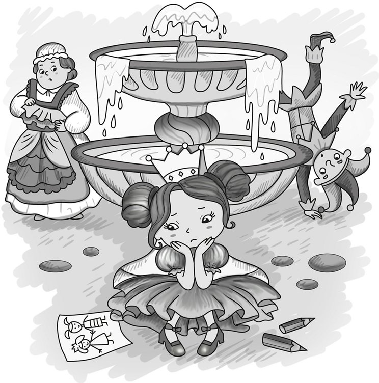 Прекрасная принцессаЖила в старинном замке,И были у принцессыПять слуг и две служанки.И двор был королевский,А в нём – фонтан и пруд.Ещё был свой дворецкийИ свой придворный шут.Но юная принцессаБыла всегда грустна —Играть неинтересно,Когда совсем одна.Зачем ей сто нарядов,Зачем ей много слуг?Принцессе нужен рядомОдин, но верный друг.