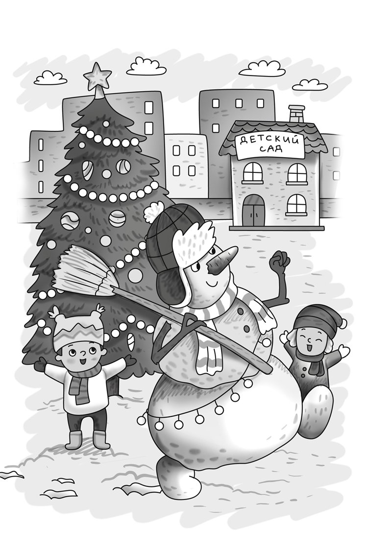 Я улыбку подарюДекабрю.На посту стоятьНе леньЦелый день.Вместо носикаМорковкуПрилепилиОчень ловко.Шапку на меня надели.Ведь не мёрзнуть,В самом деле…Крепко я метлуДержу.На охрану выхожу.Караулить ёлку надо,Территорию детсада.Радуется детвораНа охране тут с утра.
