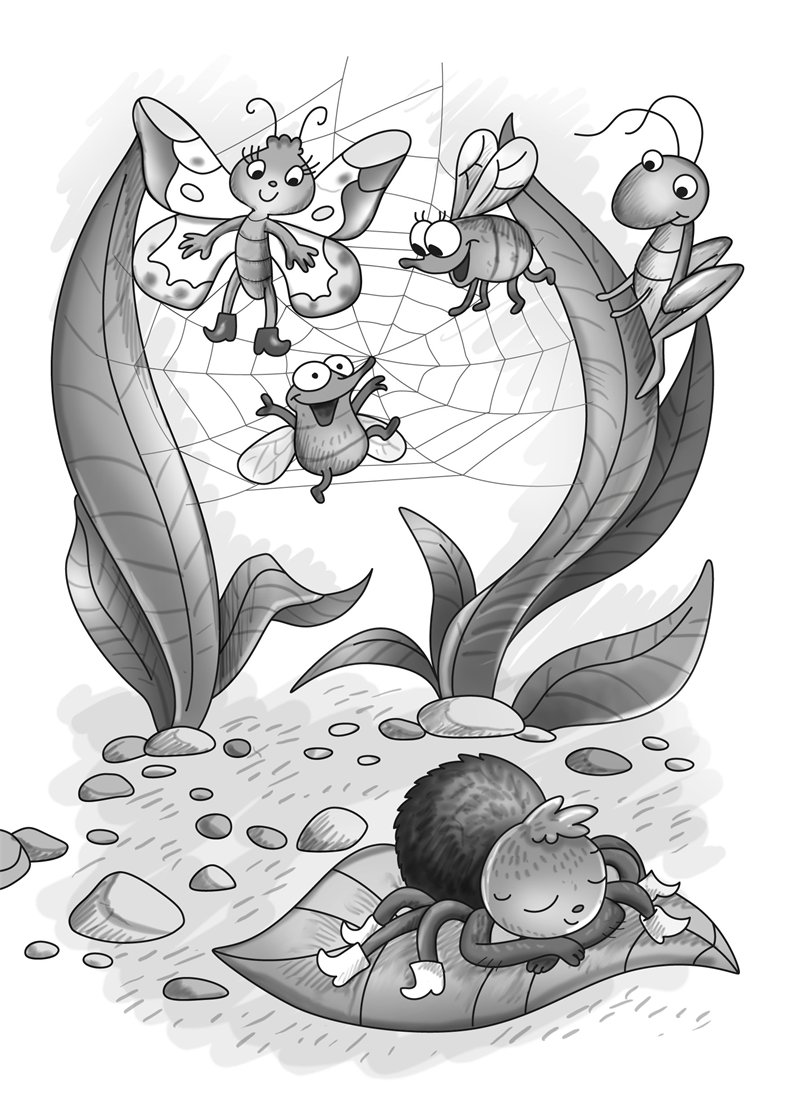 Раз надумал паучокСшить ажурный гамачок.Место в травке отыскал,Ловко ниточек напрял.Целый день трудился.Ползал, не ленился!Закрепил его повыше —Гамачок на славу вышел.Он устал, прилёг поспать.Ветер стал гамак качать.Мимо бабочка летела,Показаться захотела.Стайкою летели мушки —В гамачок набились дружно.А затем пришёл сверчок.Влез. И лопнул гамачок!Рассердился паучок!Сделал новый гамачок.Липких ниточек напрял,Их к травинкам привязал.Кто присядет в гамачок —Всех поймает паучок!