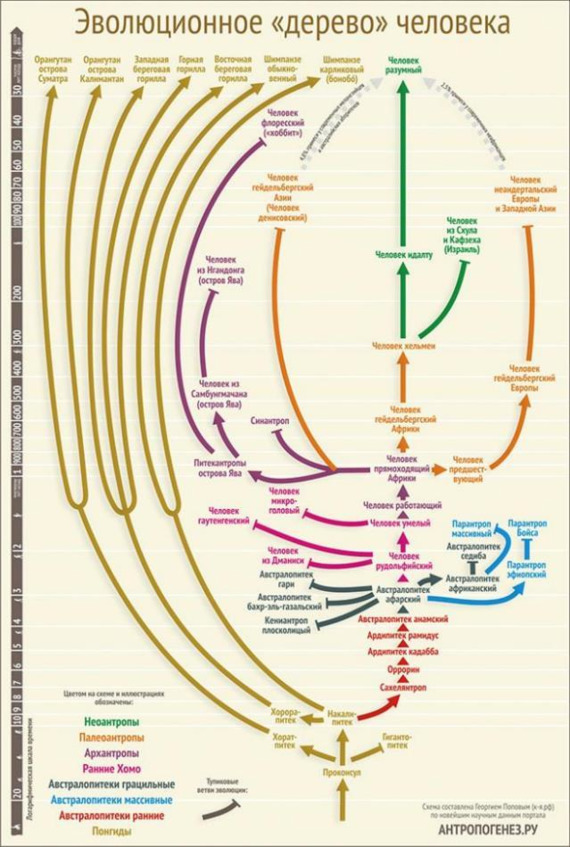 Как вам кажется на каком основании построена эта схема эволюции человека? Есть ли целые или более полные скелеты этих существ и сколько их?