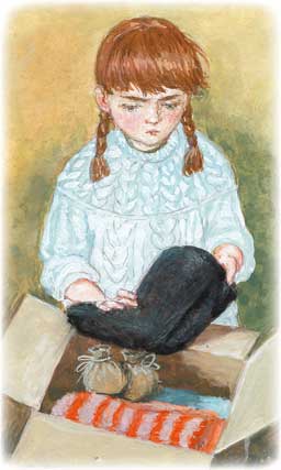 «Наверное, бабушка сама их связала. Нет, валенки не вяжут. А что делают? Не знаю. Кажется, дедушка-сосед валенками занимается, он руками много всего умеет. А руками делать трудно, – размышляла Даша со слезами на глазах. – Но куда я в таких пойду? Меня же засмеют». Даша окончательно разрыдалась.