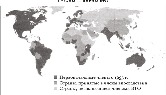 В конце концов ГАТТ в 1990-х годах превратилось во Всемирную торговую организацию (ВТО). Структура ГАТТ представляла собой преимущественно клуб индустриальных стран, созданный и управляемый в их же интересах. ВТО – более широкая организация, более похожая на ООН, чем на «Большую семерку». Большинство стран мира являются членами ВТО. Этот сдвиг отражает изменения размеров, мощи и влияния некоторых развивающихся стран. Он также должен обеспечить малым и бедным странам возможность участия в процессе модификации правил, регулирующих глобальную торговлю. Широкое представительство разнообразных интересов – хорошее, в принципе, дело, которое, однако, затрудняет достижение консенсуса и, по-видимому, замедляет процесс дальнейшего снижения таможенных барьеров.
