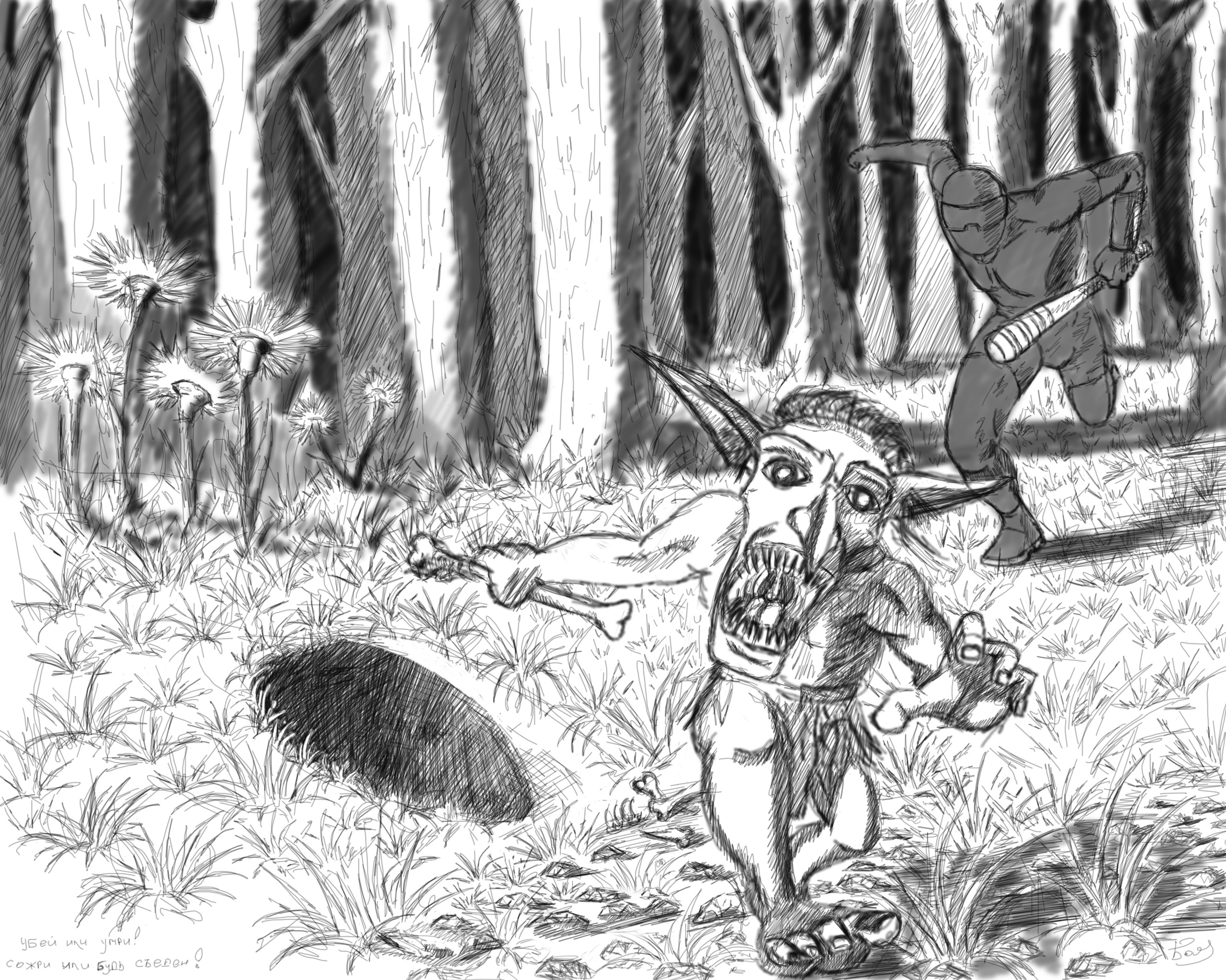 – Жаль парня, но мне как-то похер, – резко сказал здоровяк, поднимая с земли свою палицу.
