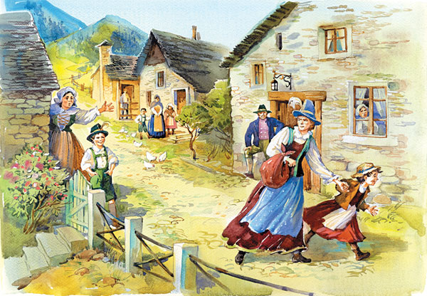 – Ты забираешь её с собой? Она бежит от Дяди Альма? Это чудо, что она ещё жива. Да ещё и румянец во всю щёку! – слышалось со всех сторон, и Дета была рада, что прошла через Деревушку без задержки и что ей не пришлось никому ничего объяснять, а Хайди не проронила ни слова и лишь стремилась вперёд.