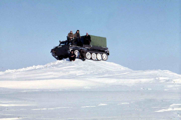 Экспедиционники заняли свои места и вездеход, клацая гусеницами, уверенно покатил по снежной целине на базу.