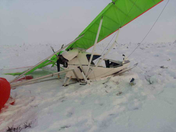 Полёт проходил на безопасной высоте при хорошей видимости, вдоль гряды холмов, высота которых не превышала 40 метров. Внезапно восходящий воздушный поток подбросил самолётик кверху. И в ту же секунду сильнейший нисходящий поток рванул машину к земле. Сергей резко взял ручку управления на себя, но земля неумолимо приближалась.