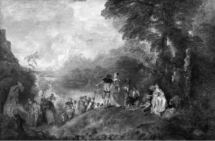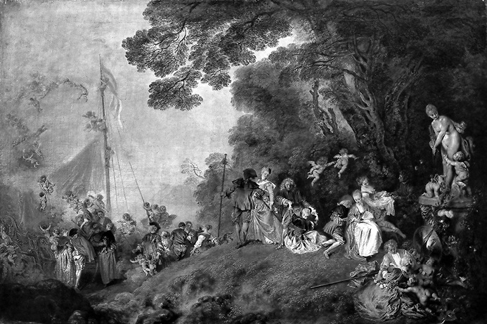 <…> все времена и все пространства – превратились в ноты одной гаммы; но тональностью гаммы оказалась блаженная страна, растворенная в лазури: страна, где небо и земля – одно, и пока сознавалась эта страна как мечта, где в будущем воскресает прошлое, а в прошлом живет будущее, но где нет настоящего, символическая картина Ватто «Embarquement pour Cythère» стала девизом творчества, и XVII век в утопиях ожил опять. Этот неосознанный еще трепет есть сознание окончательной реальности прадедовских утопий о стране мечты173.