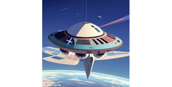Огромная фиолетовая махина была передо мной. Я смотрела на неё со стороны. Это была летающая тарелка, я таких видела на картинках прежде. Страшно не было, ведь это сон. От фиолетовой махины струился свет и дуло, как из вентилятора. Я и моё сознание были рядом с ней.