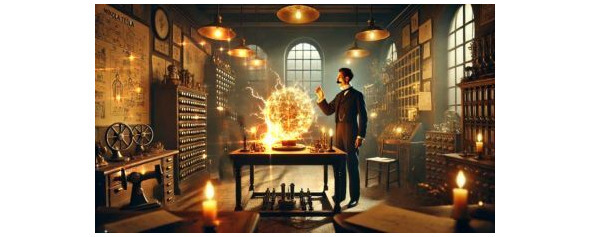 Старый граммофон поскрипывает в углу, играя тихую мелодию, и в этом спокойствии учёный чувствует себя комфортно. Внезапно на мгновение замигал свет в комнате, Тесла немного вздрогнул. Он давно привык к странным явлениям и чудесам, что происходили вокруг него, и бывали моменты, когда техника, казалось, оживала сама по себе. В душе Никола Тесла мечтал, чтобы его эксперименты открыли путь в новый мир, и в будущем просто сделали переворот, и человечество вышло за завесу реальности.