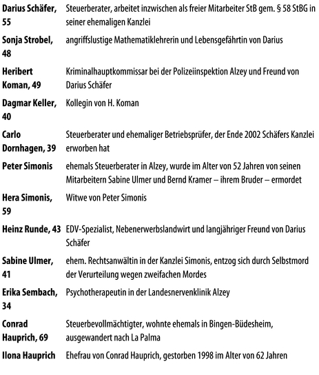 Die wichtigsten Personen, die den Ablauf des Geschehens beeinflussen oder mit ihm verbunden sind: