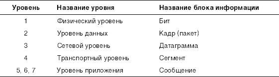 На каждом уровне блоки информации имеют собственное название (табл. 3.3).