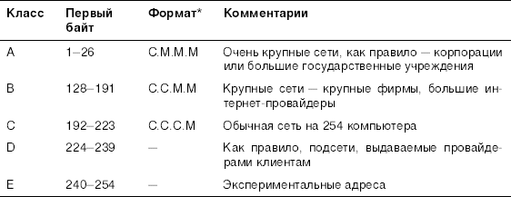 * В колонке «Формат» буквы С обозначают сетевую часть адреса, а буквы М – его компьютерную часть.
