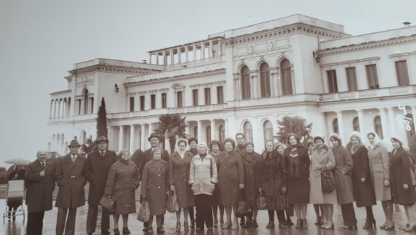 В 1981 году у меня возникла какая-то болезнь – на шее и в горле высыпали небольшие гнойнички. До этого у меня никогда не было никаких гнойников ни на каком месте тела. Я думаю, что этом как-то было связано со сменой климата с кубанского на камышинский. Моя жена оказывала мне медицинскую помощь (она ведь фельдшер) – смазывала мне горло «люголем», пыталась вылечить гнойнички на шее, но ничего не получалось. По совету врача я попросил в своём профсоюзном комитете путевку в санаторий в Крым. Как раз у меня наступил отпуск с 1 апреля 1981 года, и я уехал в Крым, где проходил лечение в санатории «Украина». В апреле в Крыму купаться невозможно – вода в море холодная. Но климат в Крыму замечательный, лечебный, сухой. Я пробыл там почти месяц, проходя различные процедуры, в том числе прогулки в сосновом лесу. В палате мы жили вдвоем – я и мужчина примерного одного возраста со мной, директор радиозавода в городе Каневе Черкасской области Украины. Жили мы с ним достаточно дружно – слегка выпивали, ходили на танцы в санаторий, ездили на различные экскурсии, например, в Ливадию, в Поляну сказок. В Ливадии наша экскурсионная группа решила сфотографироваться: