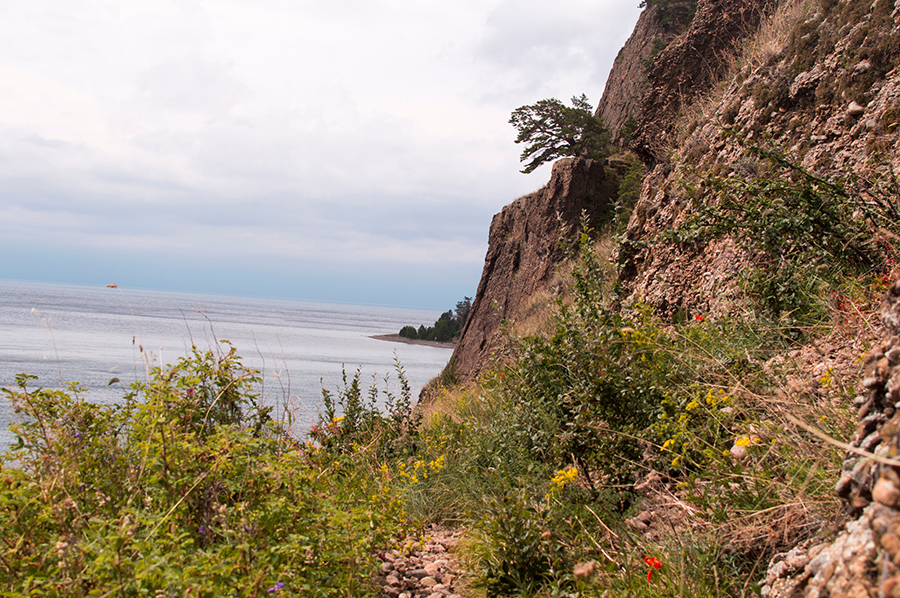 Стоило дойти до Байкала, как тропа повернула направо и пошла равниной параллельно побережью. Идти по такой тропе было одно наслаждение. Я не любил походы в горы из-за постоянных подъемов и спусков и предпочитал вот такие маршруты, которые протекали по равнинам. Тогда я уже строил иллюзии насчет того, что если равнина продлится достаточно долго, то совсем скоро я буду в поселке Большие Коты. Конечно, я снова сильно ошибался, и оказаться близ человеческого жилища предстояло лишь под вечер, будучи полностью вымотанным.