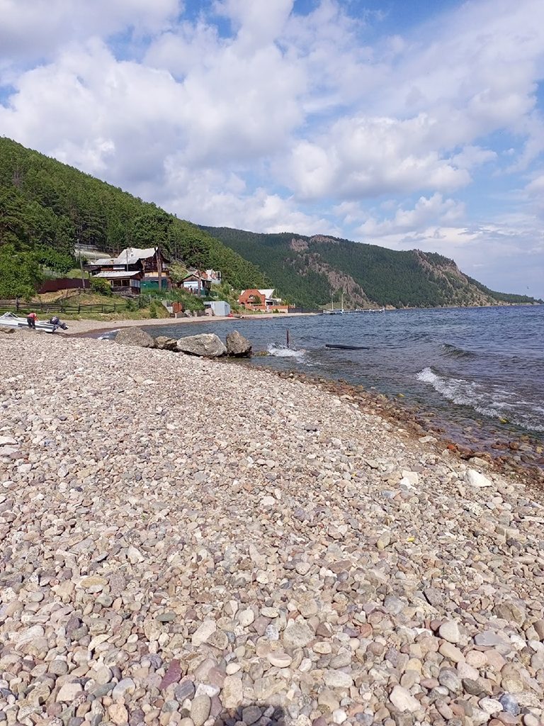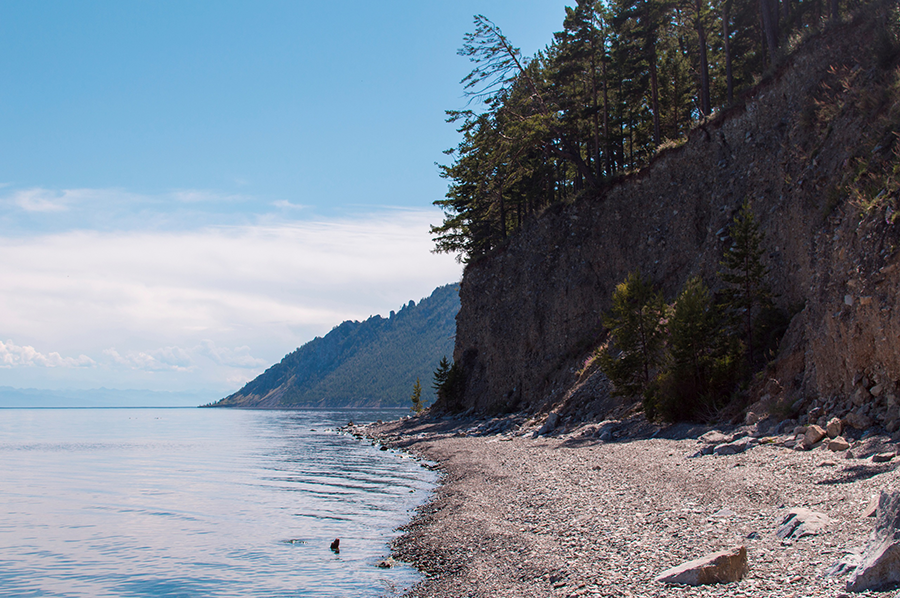 Первые полчаса идти пришлось по каменистому берегу, который после вчерашнего стал несколько ненавистен. Но альтернативы не было, поэтому пришлось принять это как есть и брести, утопая кроссовками в мелкой байкальской гальке.