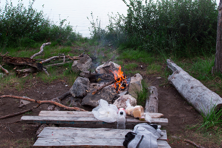 Через час после того, как поселок оказался за спиной, я нашел место для стоянки. Я уже успел возвести основу палатки, когда обнаружил, что неподалеку кто-то тоже обустроил свой лагерь. Это был Евгений, турист – любитель, который, как и я, отправился в путешествие по ББТ с Большого Голоустного. Ужиная за общим столом, мы немного поговорили о жизни, а затем разбрелись по палаткам. Все же усталость от дневных переходов давала о себе знать.
