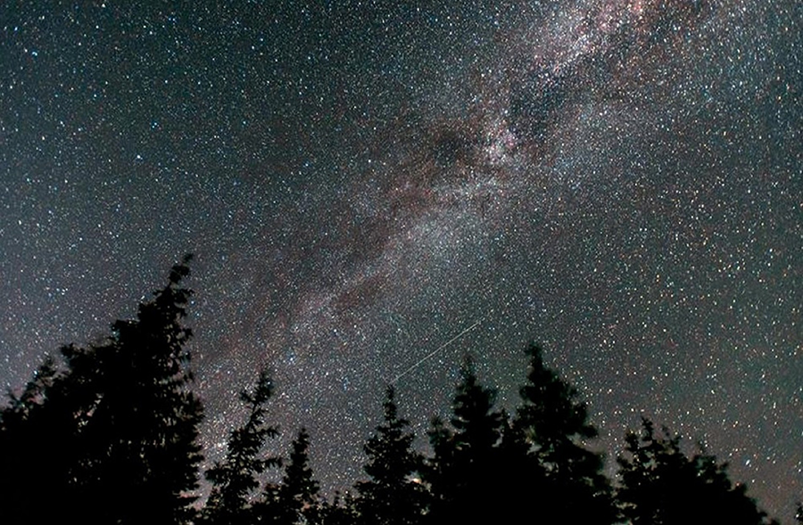 Вдруг заметил, что отлично вижу в темноте без фонаря. Я тут же избавился от лишнего источника света и стал вглядываться в темноту. Скоро глаза привыкли и стали видеть, как днем. Было столь светло, что можно было прямо сейчас выдвигаться в путь без боязни заплутать. Когда опасность не была обнаружена, то, выискивая странный источник света, глазные яблоки невольно поднялись наверх и утонули в километрах черного холодного воздуха. Когда взор все же пробился сквозь завесу смоляной тайны, то вдруг он наткнулся на небосклон, усеянный миллиардами звезд. Настоящий хоровод водили дрожащие белые точки по ясному ночному небу. А весь этот парад звезд венчала огромная венценосная луна, которая, словно старый керосиновый фонарь, покачивалась на сильном ветру.