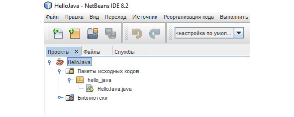 С физической точки зрения пакет Java – это отдельный каталог (папка) на диске компьютера. Имя каталога совпадает с именем пакета. Например, если вы установили NetBeans IDE на компьютер с ОС Windows с настройками по умолчанию, то в папке Documents будет создана папка NetBeansProjects. В ней расположены папки проектов. Сейчас там появилась папка HelloJava, внутри нее находится папка src. Она соответствует папке «Пакеты исходных кодов» на рис. 2.6. Внутри нее находится собственно папка пакета hellojava, которая содержит файл HelloJava. java. Как видите, физическая структура каталогов повторяет структуру проекта, отображаемую в окне NetBeans IDE.