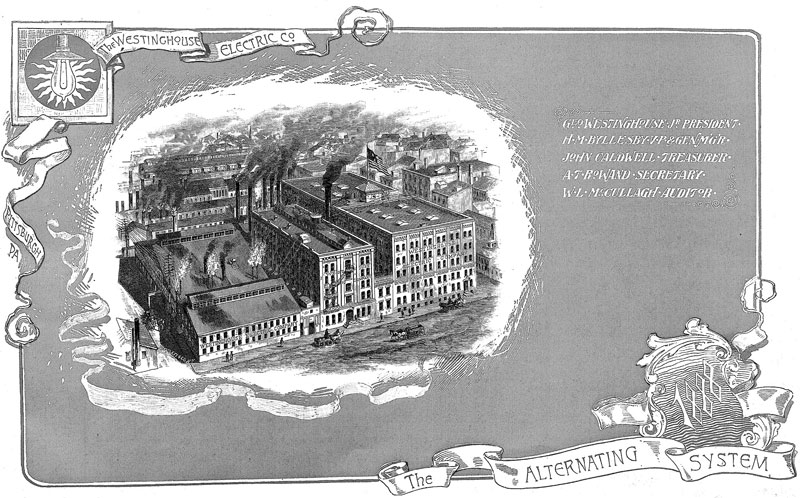 В январе 1886 года Вестингауз основал компанию Westinghouse Electric and Manufacturing Company («Электрическая и производственная компания Вестингауза»), которая просуществовала до 1999 года[20]. Первым достижением новой компании стала система освещения в городе Буффало, втором по численности населения в штате Нью-Йорк. Эта система работала на переменном токе, который представлялся Вестингаузу более перспективным. Примечательно, что практически одновременно в Буффало влез с системой постоянного тока Томас Эдисон, но Вестингауз сумел победить в борьбе за город, потому что мог передавать ток на бо́льшие расстояния (следовательно, требовалось меньше станций), и, кроме того, его система использовала гораздо меньше меди, которая стоила немало, да вдобавок как раз в тот момент начала дорожать. До конца 1886 года Вестингауз запустил около семидесяти станций, работавших на переменном токе. Для окончательной победы ему отчаянно требовались двигатели переменного тока, которые позволили бы охватить промышленные предприятия. И тут появляется Никола Тесла со своими изобретениями… На ловца, как говорится, и зверь бежит.